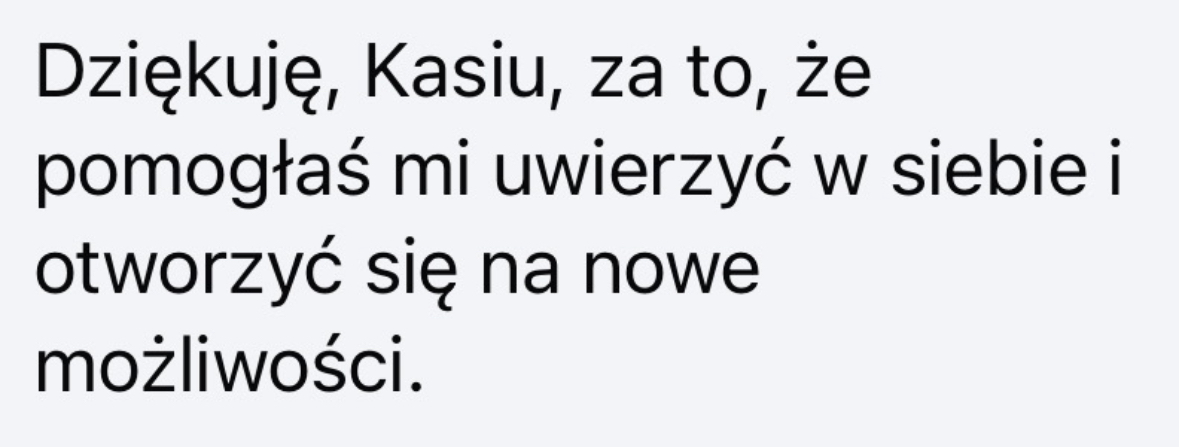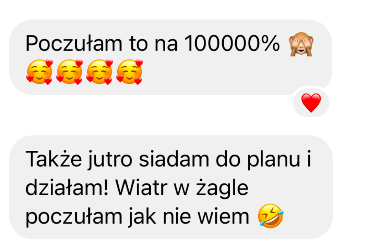 - Przeprogramujesz minimum 3 przekonania, które blokują Twój rozwój – np. „jestem za stara”, „poza etatem nie dam rady”, „muszę mieć pewność, zanim zacznę”. W ich miejsce stworzysz wspierające myśli, które realnie zmienią Twoje działania